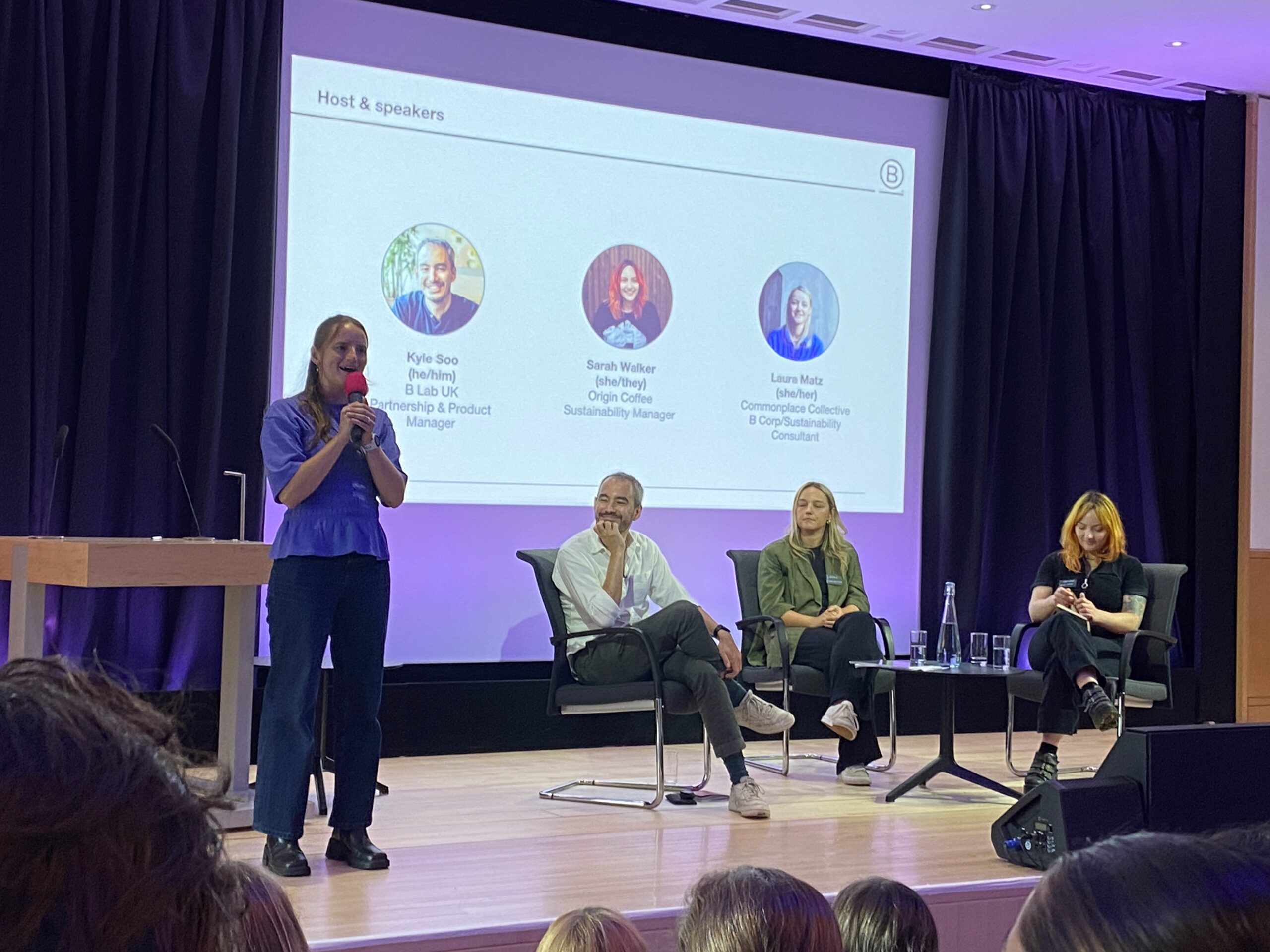 B Lab’s partnership and product manager Kyle Soo chaired a panel discussion with Origin Coffee’s sustainability manager Sarah Walker and Commonplace Collective’s B Corp and sustainability consultant, Laura Matz.